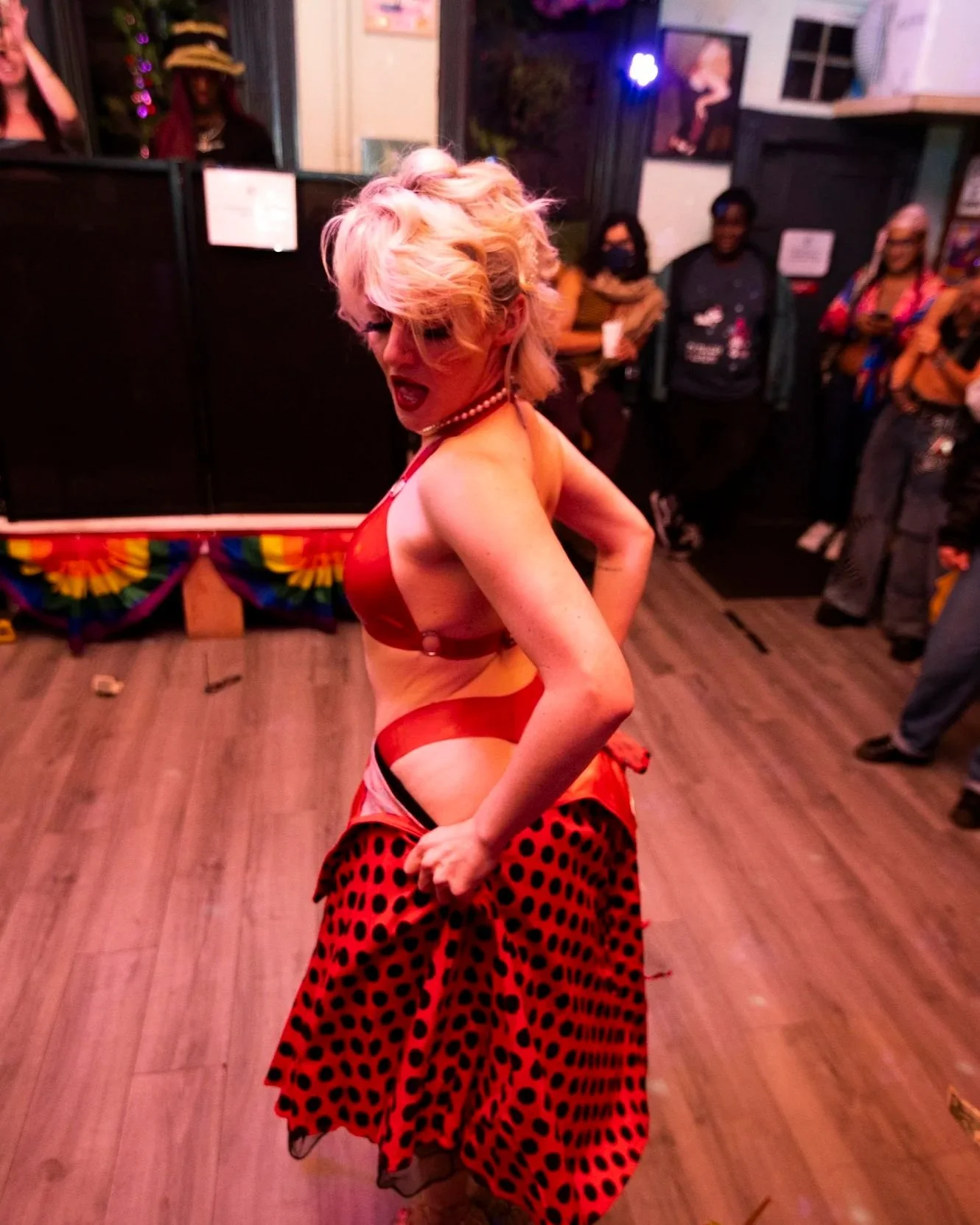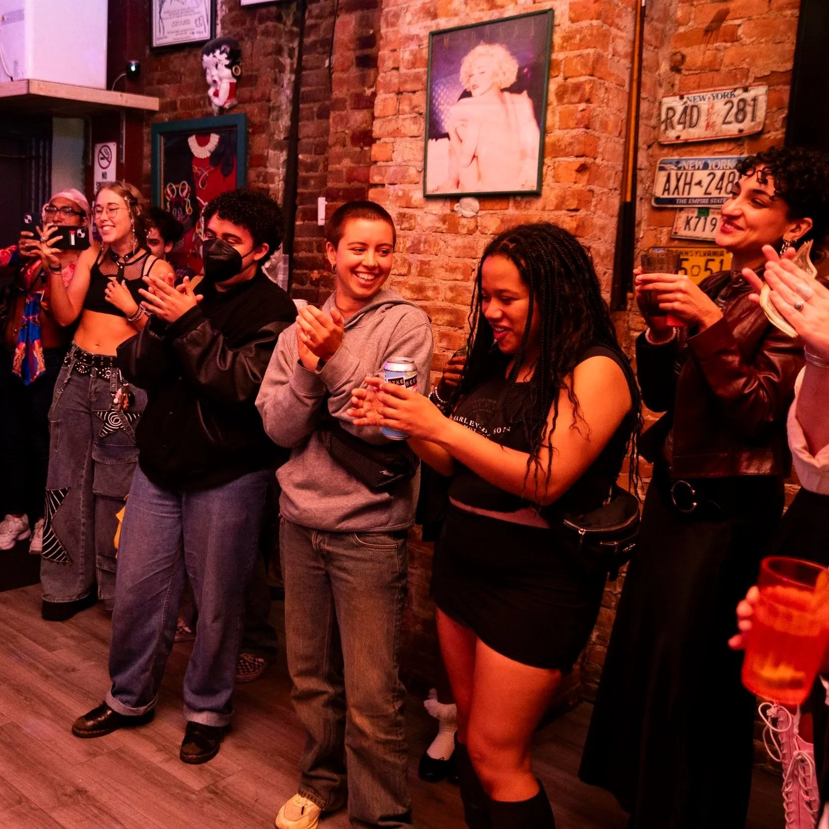 Partnering with local queer bars on slower nights has proven to be an excellent way to utilize vibrant, community-centered spaces at a low cost. At Ginger’s Bar in Park Slope, we brought the community together through a range of activations, including a local vendor market, tarot readings, burlesque performances, and sets by well-known DJs to keep the dance floor energized.